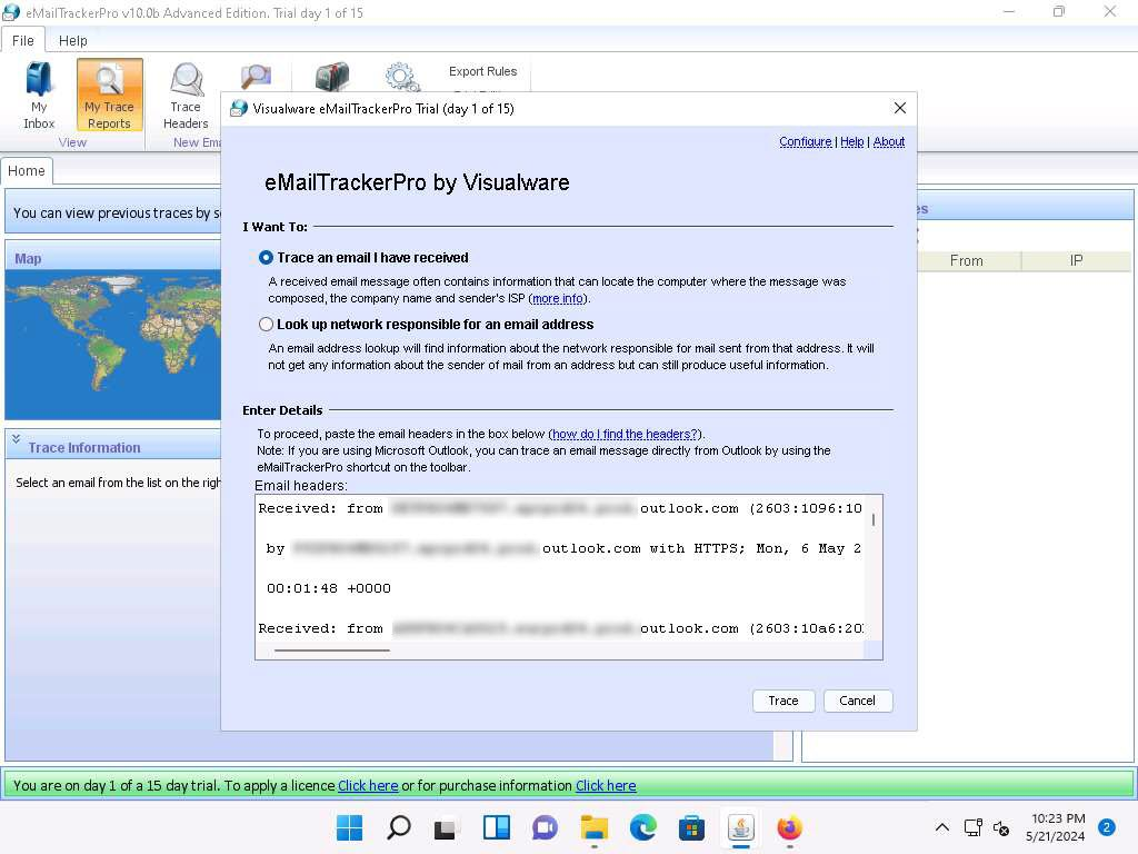 Clicca su My Trace Report e incolla il testo header originale della email per ottenere informazioni: