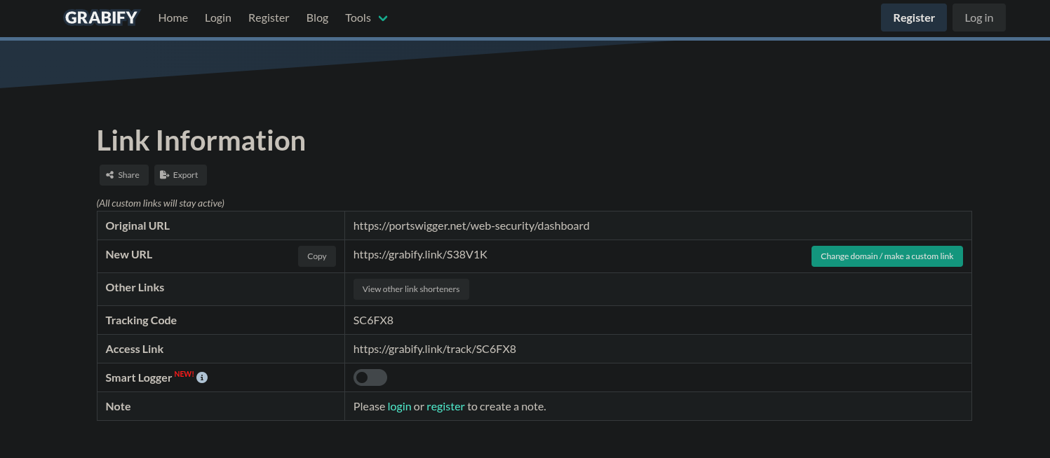Salvati il Tracking Code perchè sarà quello con il quale andremo a reperire le informazioni dal database Grabify una volta che la vittima avrà cliccato il link.