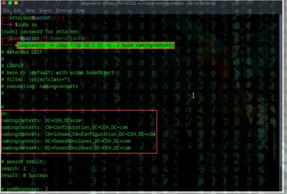 ldapsearch -h <Target IP Address> -x -s base namingcontexts