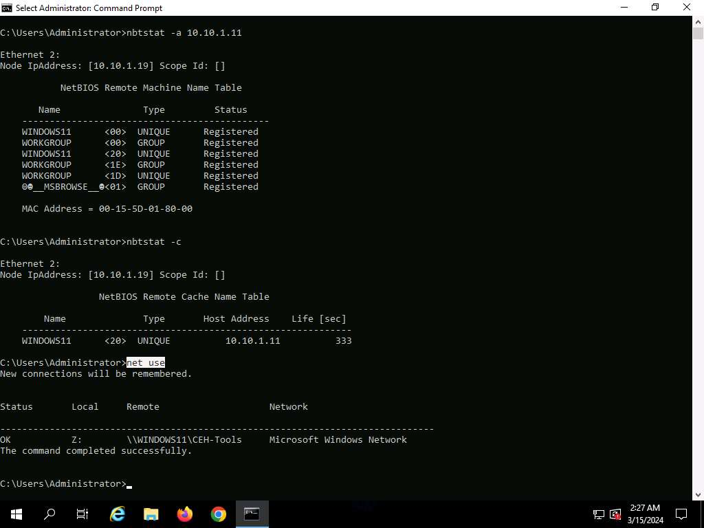 nbtstat -c #Ti da gli ultimi indirizzi che hanno utilizzato NetBIOSnet use #Ti permette di vedere le cartelle di condivisione