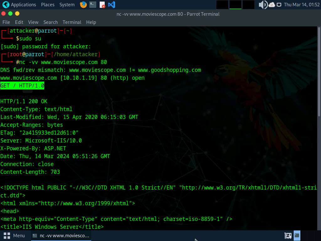 nc -vv www.moviescope.com 80Clicca Enter e inserisci questo: