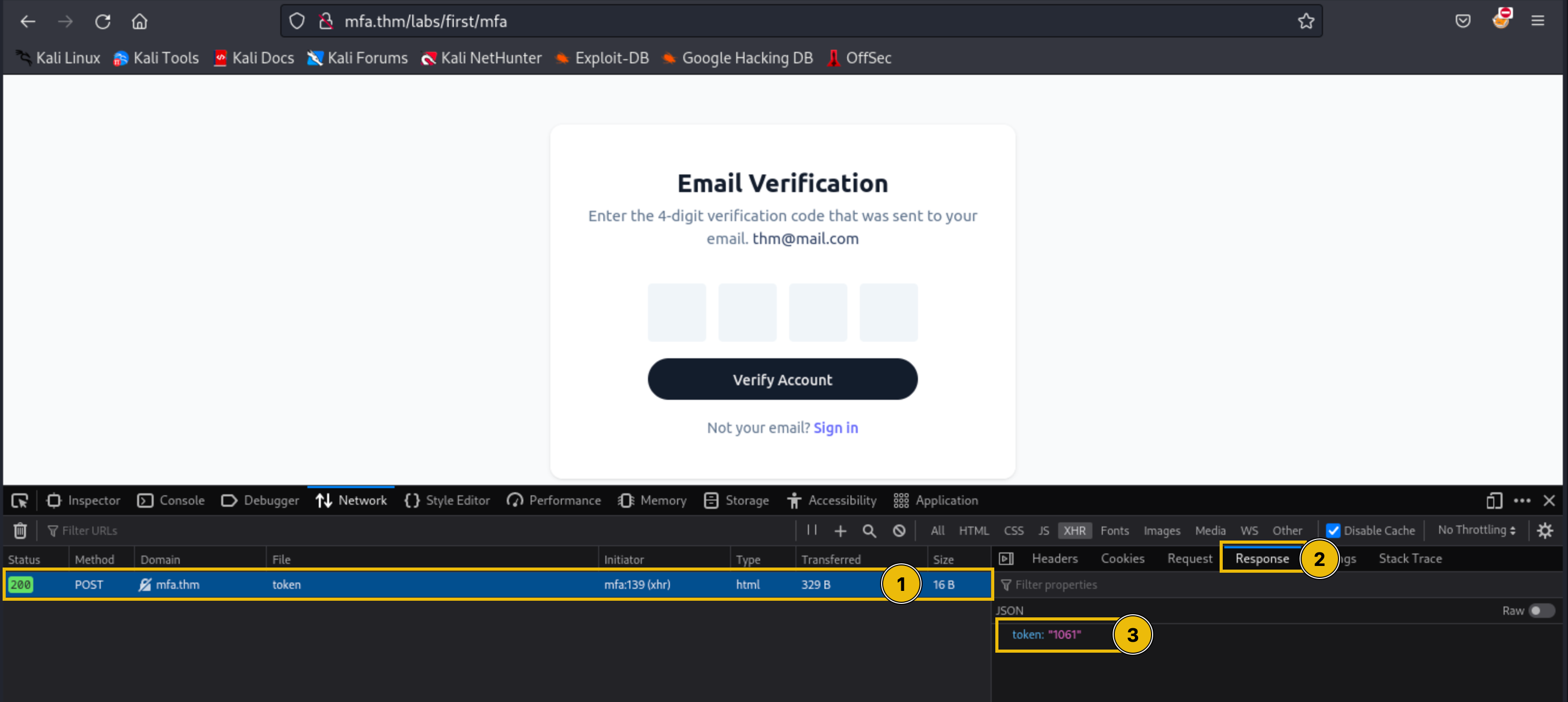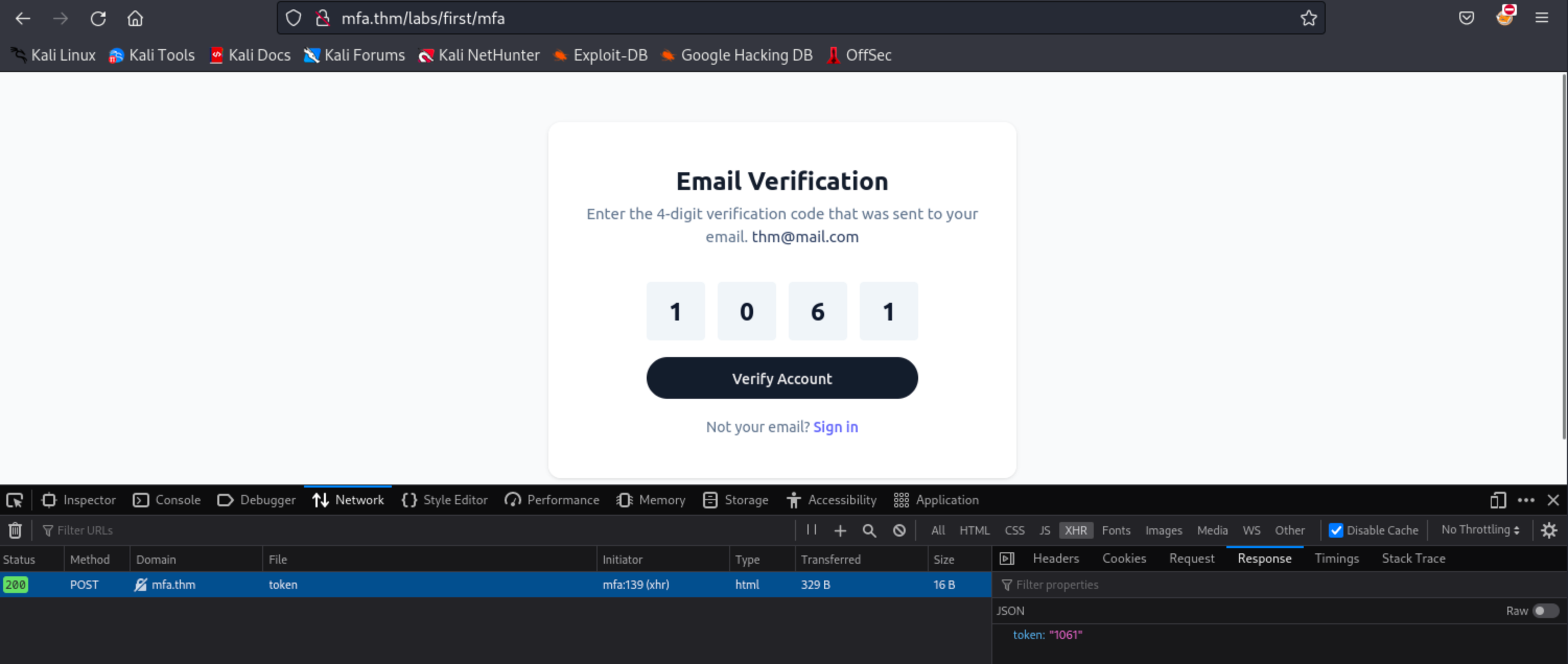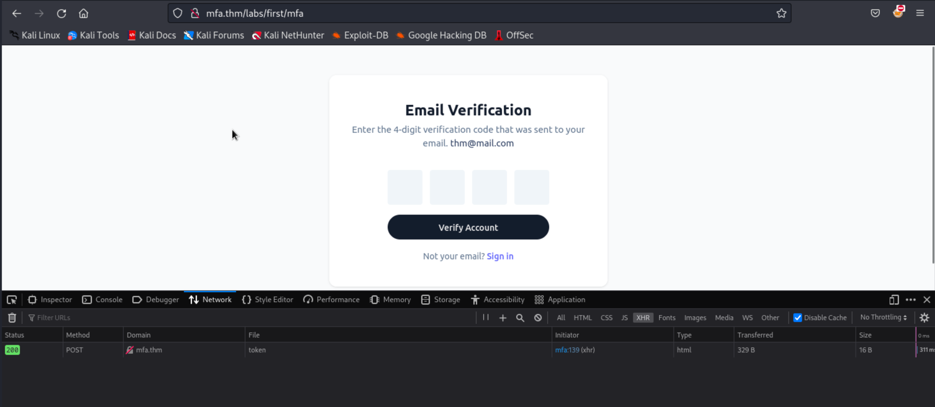 In questa serie di immagini viene mostrato come possiamo catturare il codice di verifica attraverso lo strumento per sviluppatori, ci è bastato mandare le credenziali corrette e il messaggio con il codice ci è stato mandato tramite risposta XHR.