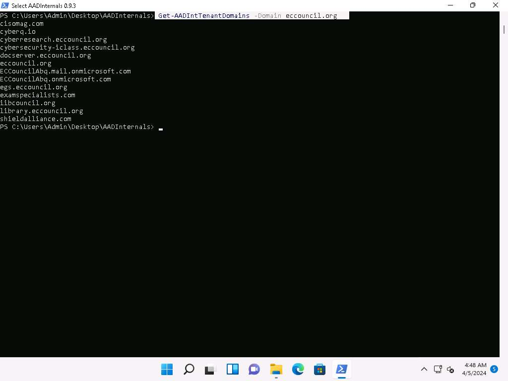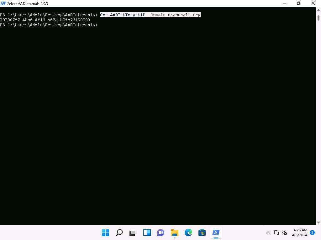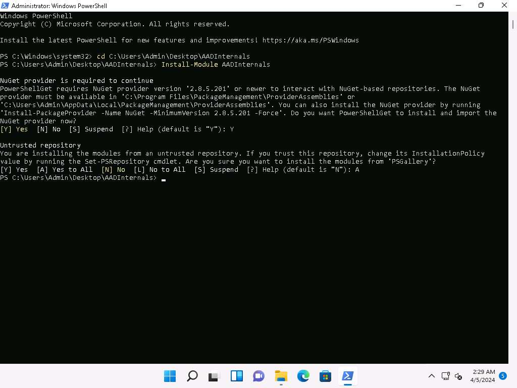 Dopo aver scaricato il software da GithHub (o tramite la cartella CEH) possiamo aprire una powershell e dirigergi all’interno della cartella AADInternals, una volta dentro possiamo lanciare il seguente comando: