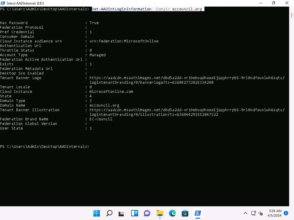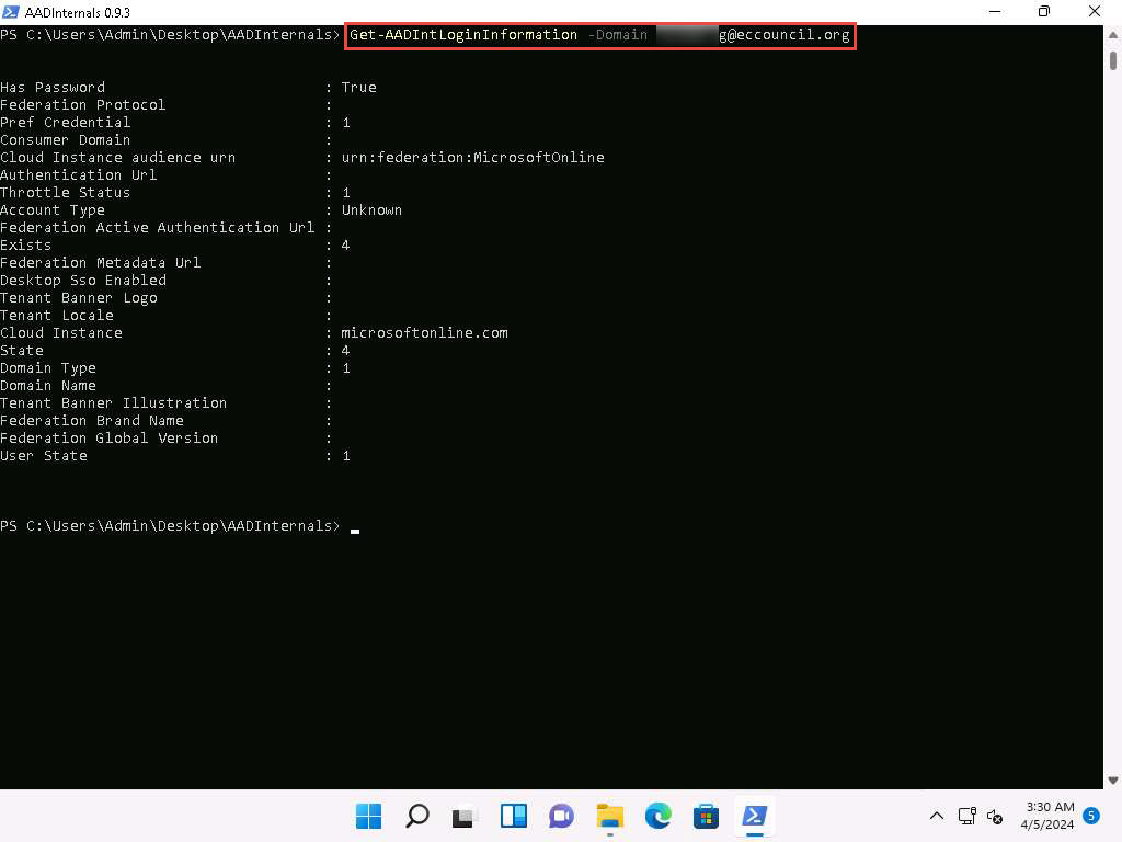 Get-AADIntLoginInformation -Domain company.comSostituendo company.com non il nostro bersaglio.
