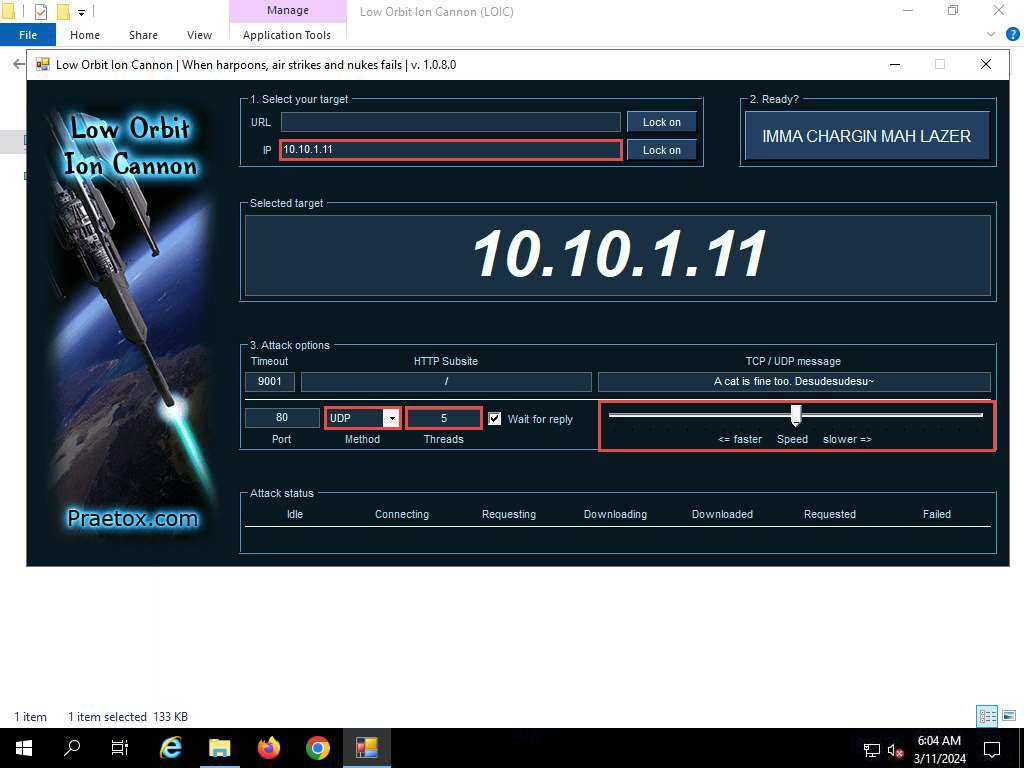 Dopo averlo fatto cliccare su IMMA CHARGIN MAH LAZER e l’attacco avrà inizio.