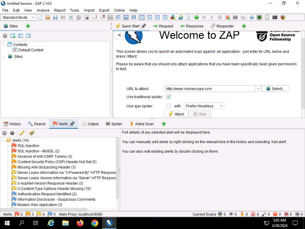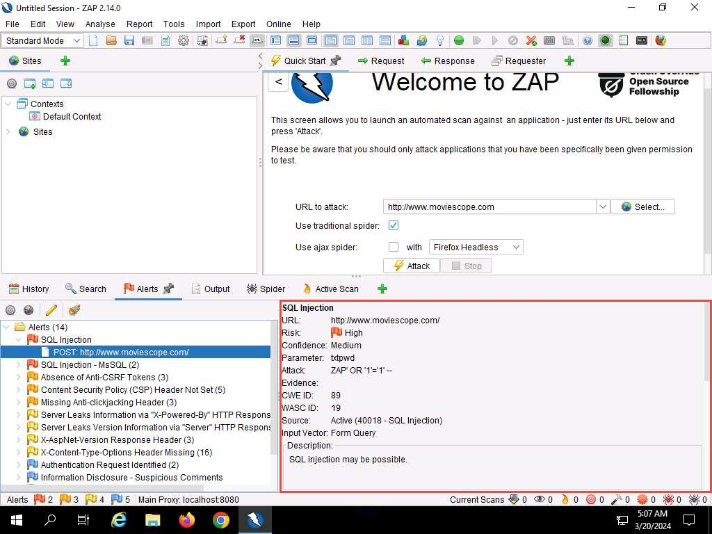 Dopo aver aspettato che finisca lo scan possiamo dirigerci alla sezione Alerts e vedere i risultati cliccando nella sezione SQL: