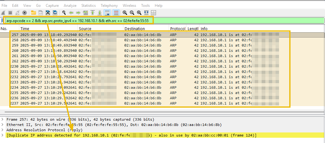 arp.duplicate-address-detected || arp.duplicate-address-frame